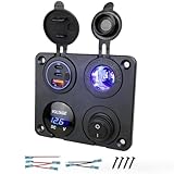 - 【4-in-1 Multifunktions-Panel】Diese 12V Steckdose ist die ultimative Lösung für Ihr Fahrzeug! Integriert ein 3-fach USB Ladegerät (2x PD3.0 + QC3.0), eine Zigarettenanzünder-Buchse mit blauer Beleuchtung, ein präzises blaues LED-Voltmeter und einen wasserdichten Wippschalter. Perfekt als Wohnmobil-Zubehör oder KFZ-Steckdose 12V für Auto, Boot und LKW.
