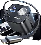 - 【3-IN-1 Auto Zigarettenanzünder USB C】Bei 12V beträgt die Gesamtleistung bis zu 50W. Der Adapter hat ein einziehbares Max.30W Typ-C-Ladekabel, einen 15W USB-C-Anschluss und einen 12W USB-A-Anschluss. Er kann gleichzeitig 3 Geräte aufladen. Jeder Anschluss kann den Ladestrom für einen effizienten Ladevorgang intelligent verteilen. Keine verknoteten Kabel, nur ausreichend Strom. Es ist ein perfektes Auto Zubehör Innenraum.