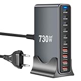 - 【10-fach USB-C-Ladestation】Diese USB-Ladestation verfügt über 10 unabhängige Anschlüsse (6x USB-C + 4x USB-A), Mit einer Gesamtleistung von 730W sorgt sie für eine effiziente Stromversorgung und hilft Ihnen, einen organisierten und aufgeräumten Schreibtisch zu schaffen.