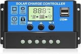 - 【30A Solarladeregler】 Der Solarladeregler ist mit dem 12V & 24V-System kompatibel und der Entladestrom ist 10A . Eingebauter industrieller Mikrocontroller Solarladeregler kann automatisch die Funktion von Solarpanel und Batterie im Solarsystem verwalten. Dualer USB-Ausgang 5 V / 2,5 A (max.) Zur Unterstützung des Aufladens von Mobiltelefonen, panel und Batterie im Solarsystem.