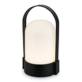 - LED Tischleuchte in Schwarz: Diese kompakte Akku Tischlampe mit 0,2W LED-Platine (70lm bei 3.000K) und einem praktischen Henkel liefert warmweißes Licht, ideal für eine stimmungsvolle Beleuchtung in Wohnräumen oder auf der Terrasse