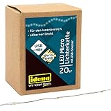 - Dekorative Lichterkette mit 20 Micro LED in warm weißer Lichtfarbe (Farbtemperatur 2700k), USB betrieben, Gesamtlänge ca. 1,25 m (davon ca. 0,3 m Zuleitung), für den Innenbereich geeignet