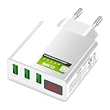 Eaxus® USB Ladegerät 3A - 3 Port Handy Netzteil mit LED-Display & Schnellladefunktion, Weiß