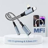 - ☁️【MFi Certified Chip】Der Telefon-Kopfhörer-Audio-Adapter ist MFi-zertifiziert, was bedeutet, dass dieser Telefon-Audio-Zusatzadapter hohe Qualität und Kompatibilität garantieren kann, ohne dass Fehlermeldungen angezeigt werden. Dieser USB-C-auf-3,5-mm-Kopfhöreranschluss-Adapter ist mit einer stoßabsorbierenden Zugentlastung ausgestattet und hat mehr als 20.000 Biegetests bestanden, was diesen USB-C- und Lightning-Kopfhöreranschluss-Adapter noch langlebiger macht.