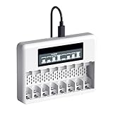 - Micro und Typ C zwei Ladeanschlüsse: unabhängige Ladekanäle, 8 Steckplätze, können 1/2/3/4/5/6/7/8 Stück 1.5V Li-ion AA AAA Akkus frei aufladen.
