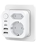 - 6-in-1-Steckdosenadapter: Dieser Doppelstecker für Steckdose verfügt über 1 Schuko-Steckdose, 1 europäische Steckdose, 2 USB-A-Anschlüsse und 2 USB-C-Anschlüsse und ermöglicht Ihnen das gleichzeitige Laden von 6 Geräten. Maximale Leistung: 3680 W (max. 16 A). Der Komfort von zwei Wechselstromsteckdosen und schnell aufladbaren USB-Anschlüssen, einschließlich USB-C, macht es zu einem vielseitigen und unverzichtbaren Accessoire für jede Einzelperson oder Familie.