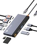 - [8K UHD-Anzeigeerlebnis] Die 10-in-1-Dockingstation lässt sich perfekt in eine Vielzahl von Bildschirmen und Projektoren integrieren und unterstützt UHD-Ausgänge bis zu 8K (30Hz) und 4K (60Hz) für reibungslose, verzögerungsfreie Videopräsentationen und -wiedergabe.
