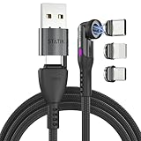 - 3-in-1 Vielseitiges Magnet Ladekabel mit USB C, Micro-USB und USB-A-Adaptern bietet Kompatibilität bei allen bekannten Geräten. Um 180° , 360° und 90° drehbares Kabel bietet maximale Flexibilität.