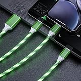 - 3 in 1 Ladegerät und Sicherheitsdesign Drei in einem Ladegerät Glühdraht iPhone Multi-Kabel ist einfach, leicht und tragbar. Die kalten LED-Lichter fließen während der Arbeit. Mit Glasfaserkabel unter dem USB-Kabel, das das Licht stabil macht. TPE-Material ist flexibel und flexibel, sicher für Kinder. Wasserdicht und funktioniert auch wenn Getränke verschüttet oder Regen tropfen. Perfekt für Zuhause, Auto, Büro, Reisen, Dock oder Teilen mit Freunden.
