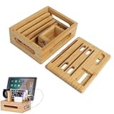 - BambusLadestation für mehrere Geräte: Mit 5 USBLadeanschlüssen und einem Uhrenständer und einem AirPodStänder können Sie mehrere Geräte gleichzeitig aufladen, einschließlich iPhone, iPad, Tablets, iwatch, AirPods, Powerbank usw., ideal zum Organisieren aller Geräte Ihre Geräte und Kabel.