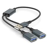 - USB Splitter 1 in 2 Adapter: USB Y Splitter kann einen USB Anschluss Ihres Computers in zwei erweitern. Mit diesem Splitter wird es möglich, zwei Geräte mit einem einzigen Kabel zu verbinden, was Ihnen hilft, sich vom Ärger von zwei verworrenen Kabeln zu verabschieden und Ihren Desktop jederzeit ordentlich und ordentlich zu halten