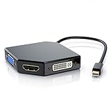 - CSL – 4k 3in1 Mini Display Port zu + HDMI + DVI + VGA Adapter (Konverter) | 3 in 1 Videoadapter | HDMI mit Audioübertragung/ DVI keine Audioübertragung | unterstützt HDCP-Verschlüsselungssystem (HDMI) | Hinweis: MiniDP auf HDMI/VGA/DVI ist nicht bidirektional! | Kabellänge: 15cm | Farbe: schwarz | 301308