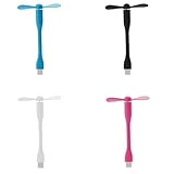 - PC Lüfter: 4 Mini-USB-Ventilator in verschiedenen Farben (Rosa, Schwarz, Blau, Weiß). Der praktische Schwanenhals ermöglicht eine stufenlose Einstellung der bevorzugten Kühlrichtung. Die Drehgeschwindigkeit lässt sich nicht manuell einstellen.