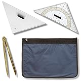 - Vollständiges Navigationsbesteck für SBF See – Kursdreieck (24 cm), Marinezirkel (18 cm), Anlegedreieck, Ausbildungskompass und Lupe für präzise Kartenarbeit, Kurs- und Positionsbestimmung.