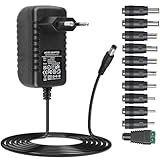 - [Spezifikationen] Eingang: AC100V-240V 50/60Hz. Ausgang: DC12V~2A (DC12V/ 0~2A alle kompatibel) Max. Leistung: 24W DC-Steckergröße: 5,5mm x 2,1mm (mit 11 auswechselbaren Steckerspitzen, unterstützt viele andere DC12V-Geräte) Polarität: innen positiv+/außen negativ- (muss mit Ihrem Gerät übereinstimmen).
