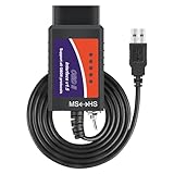 - USB ELM327 V1.5 ADAPTER: OBDii-Adapter mit dem zuverlässigen Vorteil der USB-Kabelverbindung und V1.5-Versions-Hardware vermeidet Datenkorruption und verlorene Pakete. Kippschalter MS-CAN HS-CAN kann schnell mit max. 500 kbit pro Sekunde laufen, wodurch eine Pro-Level-Check-Lichtprogrammierung und Codierung der Motorleuchte erreicht wird.