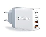 - 4-Port Mehrfach Ladegerät: USB netzteil ausgestattet mit dual USB-C- und dual USB-A-Ports gleichzeitig zu verwenden, kannst du 4 Geräte zeitgleich mit Strom versorgen von Laptops über Tablets, Handys bis zu Zubehör, Charger 2 Geräte gleichzeitig Kompromisse bei Geschwindigkeit oder Leistung.