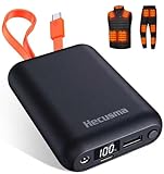- Professionelles Powerbank für Heizweste: Das powerbank für heizweste mit einer Kapazität von 18400mAh kann eine Heizzeit von 9 Stunden bieten, um Ihren täglichen Bedarf zu decken. Es kann auch ein iPhone 14/Galaxy S23 bis zu 3,5 Mal aufladen. Für schnelleres (Wieder-)Aufladen empfehlen wir die Verwendung eines 5V/3A (bis zu 22,5W) Netzteils, sodass der Akku innerhalb von 6 Stunden vollständig aufgeladen ist.