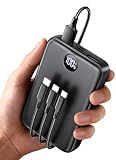 - 🔋【PD & QC bis zu 22,5W Schnellladung】 Die Powerbank mit Kabel USB-A-Port-Ausgang unterstützt bis zu 22,5W Schnellladung, integriertes USB-C-Kabel unterstützt 18W PD-Schnellladung, integrierte andere Datenkabel (kompatibel mit iPhone) unterstützt 20W Schnellladung, 30 Minuten Laden Sie Ihr Telefon auf 60 % auf