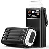 - 【Tragbare Ladestation mit integrierten 4 Kabeln】Diese Powerbank mit einer Kapazität von 60000 mAh verfügt über 3 Ausgangskabel (iOS, USB-C, Mikro-USB) und 1 Eingangskabel (USB-A). Es ist nicht erforderlich, mehrere Kabel mitzunehmen, was das Problem mit chaotischen Ladeschlangen löst. Sie ist kompatibel mit fast allen Smartgeräten auf dem Markt, wie z. B. Smartphones , Tablets, Uhren, Kopfhörern, Kameras, Drohnen, Mini-Lautsprechern, LED-Lichtern, LED-Lüftern usw.