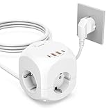 - 4 Steckdosen Würfel Mehrfachsteckdose mit Schalter, ausgestattet mit einem praktischen Schalter für Zeiten, in denen die Steckdosenleiste nicht genutzt wird. Die Steckdosenleiste Würfel haben 4 europäischen standardstecker und können bis zu 2500W leistung bei einer eingangsspannung von 220 bis 250V liefern. Verteilersteckdosen ein 45-Grad-interferenzfreies design, das die gleichzeitige nutzung oder Kontrolle 4 hochleistungs geräten und 2USB-A,2 USB-C Smart Devices.