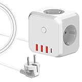 - 6 in 1 Steckdosenleiste Würfel: Diese Mehrfachsteckdose verfügt über 3 AC steckdosen (3680W/16A) und 3 USB Anschlüsse, die bis zu 6 Geräte aufladen können und ausgezeichnete Stromunterstützung und Bequemlichkeit für Ihren Laptop, Telefon und andere Geräte zur Verfügung stellen.