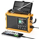- 📻【5 Stromquellen & Größere Batterie Kapazität】: Der eingebaute 12000-mAh-Akku ermöglicht eine ununterbrochene Laufzeit von bis zu 60 Stunden bei mittlerer Lautstärke. Das Notfallradio ist mit einem großen 8500-mm²-Solarpanel aus monokristallinem Silizium ausgestattet, dessen Fläche sechsmal größer ist als bei herkömmlichen Solarradios. Dank branchenführender Solartechnologie ist die Ladeeffizienz doppelt so hoch. Das Radio kann über ein Type-C-Kabel, das Solarpanel, AAA-Batterien (nicht enthalten), den eingebauten Akku oder die Handkurbel geladen werden. In Notsituationen ohne Stromversorgung kann die Handkurbel zum Notladen verwendet werden.