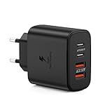 - 【 USB C Ladegerät mit Schnellladefunktion (65W)】Dieses USB-C Schnellladegerät unterstützt Quick Charge 3.0 und liefert bis zu 65W Leistung. Mit 20W am USB-C Port und 3,1A/5V am USB-Port können Sie ein iPhone oder Samsung-Smartphone in nur 30 Minuten auf 58 % aufladen. Das intelligente Ladegerät passt die Leistung automatisch an, wenn mehrere Geräte gleichzeitig angeschlossen sind.