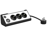 - Design-Steckdosenleiste mit grauen Steckdosen-Einlagen • Großer Ein/Aus-Schalter mit Kontroll-LED: auch per Fuß bedienbar • 3 Schutzkontaktsteckdosen mit insgesamt 3.680 Watt Anschlussleistung • 1x USB-C und 1x USB-A mit je 5 Volt und bis zu 17 Watt • 140 cm langes Anschlusskabel