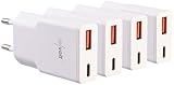 - USB-A/C-Netzteile im praktischen 4er-Set: ideal für alle Mobilgeräte mit USB-A- und USB-C-Anschluss • 1 x USB-C mit Power Delivery 3.0 bis 20 Watt: zum schnellen Aufladen von kompatiblen Mobilgeräten mit USB-C-Ladeanschluss • USB-A-Ladestrom mit automatischer Anpassung: 5 V bis 3 A / 15 Watt, 9 V bis 2 A / 18 Watt, 12 V bis 1,5 A / 18 Watt • Schutz vor Überstrom, Überhitzung und Kurzschluss • Modellkennung: VTX-20VGAC-02 • Ausgangsspannung: 5,0 V DC