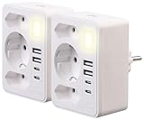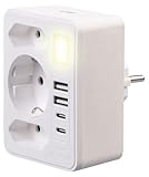 - 8-in-1 Mehrfach-Steckdosen-Adapter • Mit 3 Steckdosen, 2 USB-A-Ports und 2 USB-C-Ports • USB-C mit je 5 V DC/ max.15 W / 3 A • USB-A mit je 5 V DC/ max. 12 W / 2,4 A • Inklusive Nachtlicht (3.000 K)