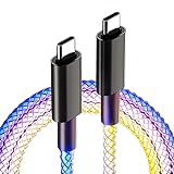 - [Schnellladefunktion] Dieses leuchtende USB-C-zu-USB-C-Ladekabel unterstützt 66W Schnellladung (erfordert einen 66W-Ladestecker) und ermöglicht so das schnelle Aufladen Ihrer Geräte in kürzester Zeit. Sparen Sie Ladezeit und erfüllen Sie die Anforderungen Ihres dynamischen Lebensstils und Ihrer Arbeitsbedürfnisse