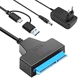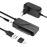 - SCHNELLE ÜBERTRAGUNGSGESCHWINDIGKEITEN: Der Adapter von SATA auf USB unterstützt USB 3.0 Geschwindigkeiten von 5 Gbit/s über USB-A. Mit UASP fähigen Computer können Sie Geschwindigkeiten von bis zu 70% schneller als bei herkömmlichem USB 3.0 erleben