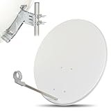 LogiSat 80cm Satelliten Sat Spiegel Schüssel Antenne Anlage HDTV Full Ultra HD UHD 4K (hellgrau)