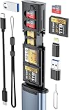 - 【SD-Kartenleser & SD Card Holder 2 in 1】Dieser vielseitige Speicherkartenleser sd kartenleser vereint Speicherkartenspeicherung und ultraschnelle Datenübertragung. Als SD-Kartenhalter bietet er sicheren Platz für bis zu 3 SD-, 4 TF- und 2 Nano-SIM-Karten. Als Micro-SD-Kartenleser ermöglichen mehrere Steckplätze die gleichzeitige Datenübertragung unterwegs.