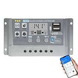 - 【30A Solarladeregler】 Der Solarladeregler ist mit dem 12V & 24V-System kompatibel und der Entladestrom ist 10A . Eingebauter industrieller Mikrocontroller Solarladeregler kann automatisch die Funktion von Solarpanel und Batterie im Solarsystem verwalten. Dualer USB-Ausgang 5 V / 2,5 A (max.) Zur Unterstützung des Aufladens von Mobiltelefonen, panel und Batterie im Solarsystem.