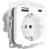 - 2-in-1 Funktionalität: Der Abdeckrahmen bietet eine SCHUKO Steckdose mit erhöhtem Berührungsschutz (Safety+) sowie zwei USB Typ A Steckbuchsen, die gleichzeitig zum Laden und Versorgen mobiler Geräte genutzt werden können.