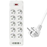 - [Wandmontage]: Die Steckdosenleiste 10 fach kann an der Wand platziert werden und jedes elektrische oder elektronische Gerät anschließen, das Sie benötigen, um Platz zu sparen, schön und bequem. Das Power Strip mit 2M-Verlängerungskabel, nicht leicht zu verformen, langlebig und sicherer als andere Netzkabel.