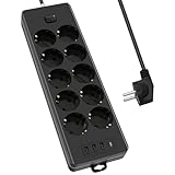 - 【Mehrfachsteckdose mit USB】10-fach steckdosenleiste integrierte 2 USB-A Und 2 USB-C Anschlüsse können gleichzeitig Strom liefern, mit einem Gesamtausgangsstrom von 3,1 A. Der USB-C Schnellladeanschluss bietet eine Stromversorgung von bis zu 20 W. Es kann digitale Geräte wie Mobiltelefone und Tablets zu Hause und im Büro aufladen.
