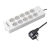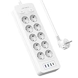 - 【Steckdosenleiste mit USB】Merhfachsteckdose 10-fach mit 4USB, Ausgestattet mit 10 europäischer Steckdosen(16A/4000W) und 4 USB (3.4A/17W). Man kann mit dieser Merhfachsteckdose bis zu 14 Geräte gleichzeitig aufgeladen werden können. 1,5m Kabellänge H05VV-F 3G1,5 und erhöhtem Berührungsschutz.