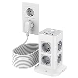 - 12 in 1 Mehrfachsteckdosen 10 Meter: Dieser Steckerleiste mit 4 USB Anschlüssen und 8 Schuko Steckdosen kann 12 Geräte gleichzeitig laden und deckt den Ladebedarf für Zuhause, Schule, Büro; Platzsparender Steckdosenwürfel mit Kabel im Turmdesign für den Schreibtisch