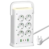 - Innovatives Design: Die 12 fach steckdosenleiste ist mit einem LED-Nachtlicht gepaart(3 Beleuchtungsmodi :Warm-/Kalt-/Mischlicht) , so dass Sie sich im Dunkeln frei bewegen können, Einmal antippen zum Wechseln, Die Oberseite der steckdosenturm ist mit einem einzigartigen Griff ausgestattet, der sicherer und bequemer ist, wenn Sie sich bewegen müssen und Ihnen mehr Komfort und Sicherheit bietet