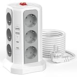 - 17 in 1 vertikale Steckdosenleisten: Die multifunktionale vertikale Steckdose von TOPREK ist mit 12 Schuko-Steckdosen und 5 USB-Anschlüssen (3 USB-A und 2 USB-C) ausgestattet. Das Turmdesign spart mehr Platz in Ihrem Büro oder Zuhause, um Ihren wachsenden Bedarf an Steckdosen und Ladegeräten zu decken.