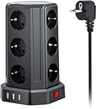 - 18 IN 1 : KOOSLA integriert 12 Steckdosen und 6 USB in einem steckdosenturm, so dass Sie bis zu 18 Geräte gleichzeitig anschließen können, auch wenn der Platz begrenzt ist, was es zur idealen Lösung für Zuhause, im Büro, bei Meetings, auf Reisen usw. macht. 6 USB-Anschlüsse mit eingebauten Smart-ICs unterstützen einen Gesamtstrom von 4,8 A. Er erkennt Ihr Gerät automatisch und liefert den schnellsten Strom von bis zu 2,4 A bei Verwendung eines einzelnen USB-Anschlusses.