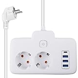 - Vielseitige USB-Anschlüsse: Ausgestattet mit 4 USB-Anschlüssen (2A2C), bietet die Steckdosenleiste Ladeoptionen für Smartphones, Tablets und andere USB-Geräte, ideal für den täglichen Gebrauch