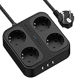 - 8-in-1-Steckdosenleiste: Die USB Mehrfachsteckdose mit 4 fach, 3 USB-A-Anschlüssen und 1USB-C-Anschluss ermöglicht das gleichzeitige Aufladen mehrerer Geräte und bietet ein Höchstmaß an Sicherheit, Komfort und Zuverlässigkeit. Fortschrittliche Technologie gewährleistet effizientes Laden durch optimale Verteilung des Stroms. Gesamtleistung: 5V/3,4A, 17W.