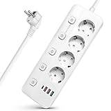 - Praktischer Ein-/Ausschalter pro Steckdose: Schalten Sie jede der 4 Steckdosen individuell per Kippschalter ein oder aus – spart Energie und erhöht die Sicherheit, besonders bei Geräten im Standby-Modus.