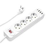 - 4 Fach Mehrfachsteckdose mit Schalter: Unsere Verteilersteckdose haben 4 europäischen standardstecker und können bis zu 3680W leistung bei einer eingangsspannung von 220 bis 250V liefern. Dies Verteilersteckdosen verfügen über einen hauptschalter und ein 45-Grad-interferenzfreies design, das die gleichzeitige nutzung oder Kontrolle 4 hochleistungs geräten und 4 USB Smart Devices.