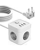 - 6-In-1 Steckdosenwürfel : Dieser Steckdosenwürfel verfügt über 3 AC-Ausgänge und 3 USB-Anschlüsse mit fortschrittlicher Technologie, die eine Ladegeschwindigkeit von bis zu 2,4 A pro Anschluss durch optimale Stromverteilung gewährleisten. Laden und betreiben Sie alles, von großen Geräten bis zu Ihrem Telefon.