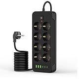 - ✨【14 in 1 Steckdosenleiste】- Die elektrische Steckdosenleiste mit 8 Steckdosen, 4 USB-A-Anschlüssen und 2 USB-C-Anschlüssen ermöglicht es Ihnen, mehrere Geräte gleichzeitig aufzuladen und bietet das höchste Maß an Sicherheit, Bequemlichkeit und Zuverlässigkeit.